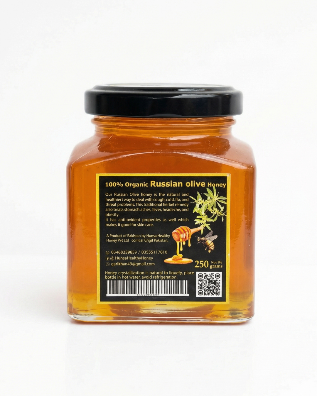 Our Russian Olive Honey in an elegant glass jar — a beautiful gift or a premium everyday staple. The glass packaging preserves the honey’s natural aroma and ensures zero chemical leaching. Same bold, floral flavor from the Russian Olive blossoms of Hunza, now presented in style.